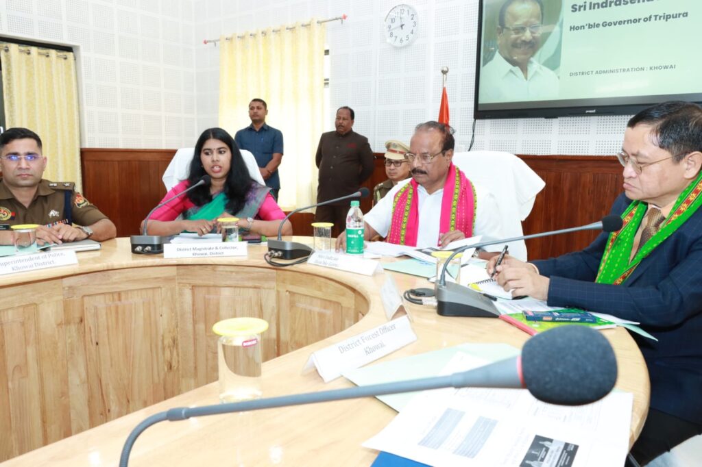 Governor Indra Sena Reddy Nallu Reviews Development Projects In Khowai District.