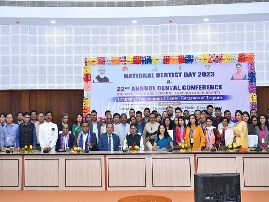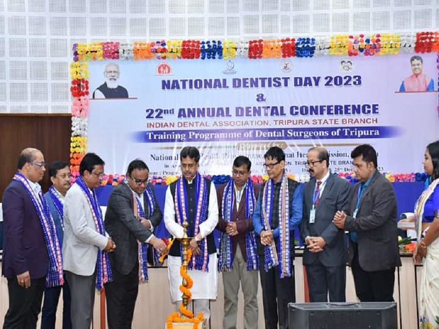 Hon'ble Chief Minister Professor (Dr.) Manik Saha addressed the National Dentist Day 2023 programme & 22nd annual dental conference of Indian Dental Association, Tripura State Branch organized by National Oral Health Programme, NHM at Pragya Bhavan.