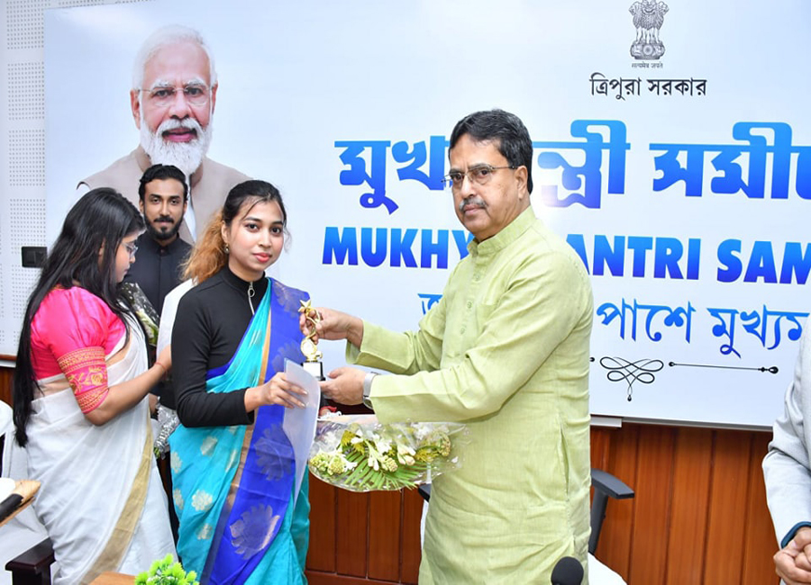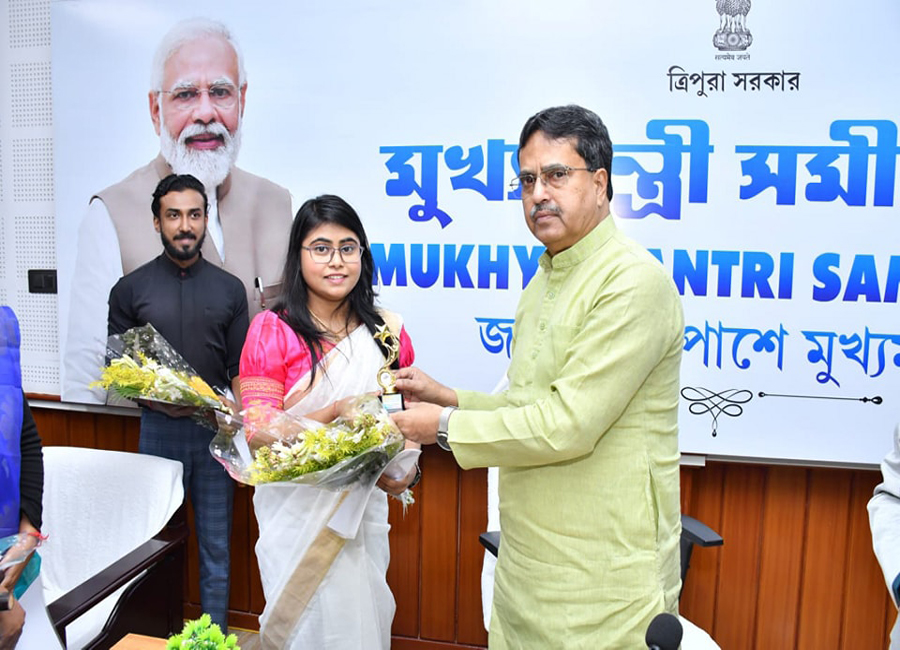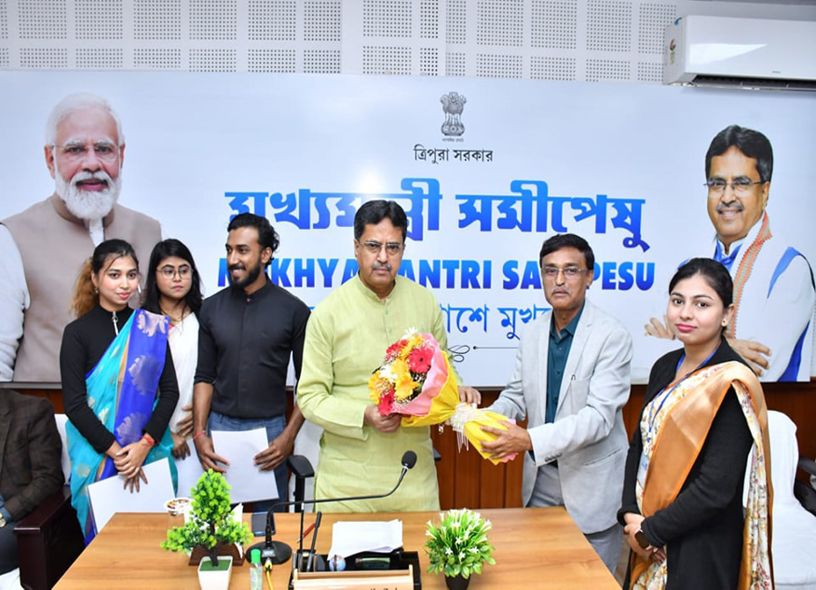 Honble Chief Minister Professor (Dr.) Manik Saha Manik Saha felicitated three candidates in his official residence on 27.12.2023 who have been appointed to work in nursing care in Japan.